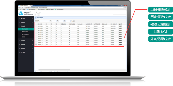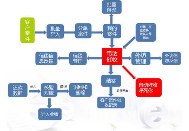 为银行及各大金融机构量身定制不良信贷催收系统,管理功能全面,流程清晰,系统安全稳定,有效帮助客户提升催收业绩、降低不良债权比率。